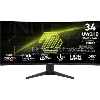 MONITOR GAMING MSI MAG 346CQ 34" CURVO 3440 X 1440 180 HZ ANTI-GLARE HDMI Y DP 9S6-3DD71M-004 NEGRO